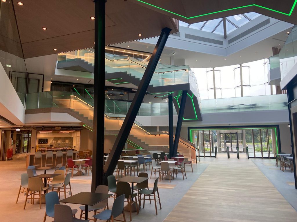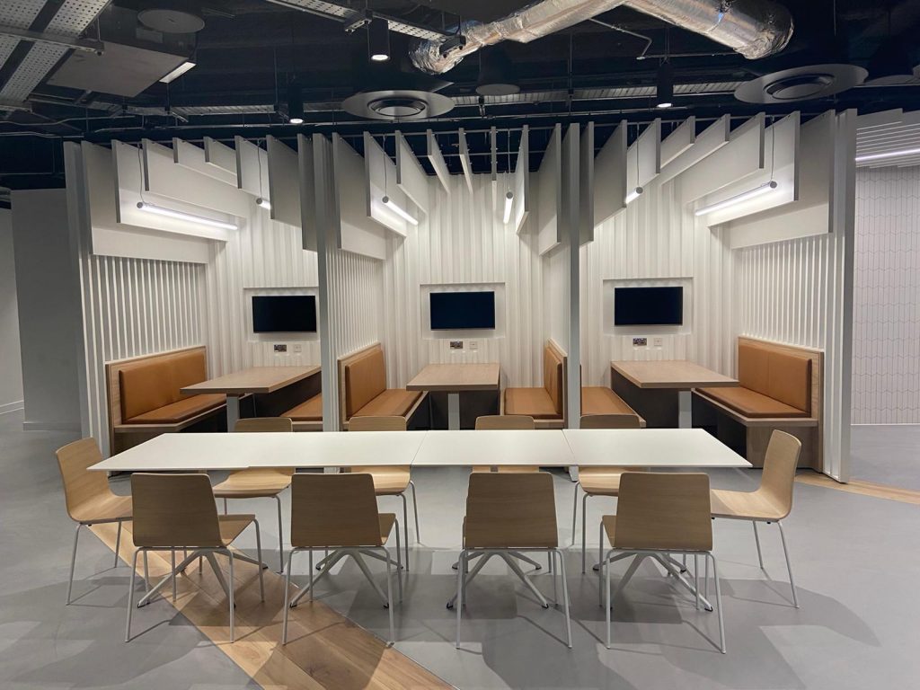 A recent fit out project completed by Glenn Wood Tullamore with Perkins&Will and mac-group.com. Scope of work included Bleacher Seating, Lookout Cantilevered Room, Atrium Spandrel Panelling & Fins, Tech Link Units, Print Stations, Sliding Whiteboards, Lockers, Cladding of Stairs, Tea Stations, Ceilings, Wellness Suits and Vanity Units.